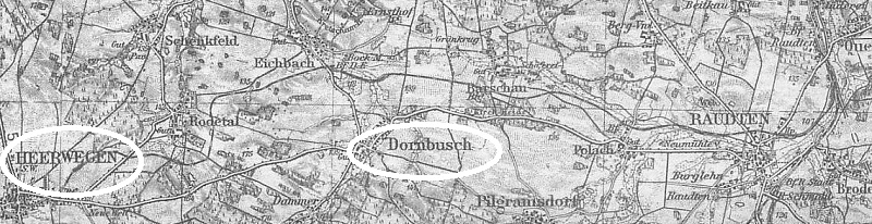 Weitere umbenannte Orte finden Sie beim Vergleich dieser Kartenausschnitte! Es fällt auf, dass es sich dabei ausschließlich um Orte außerhalb des Kreise Lüben handelt. War das Zufall oder verweigerten sich die Lübener Behörden? Ungeklärt bleibt auch, wann bzw. wie lange Tarnau/Dornbusch zum Kreis Lüben gehörte.