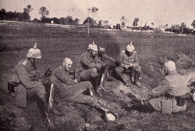 September 1915 bei Suliczewo (heute Suličava-Belarus). Von links: Gr. v. Finckenstein, v. Richthofen, v. Niebelschütz, v. Winterfeld, Stabsvet. Fischer, v. Lieres.