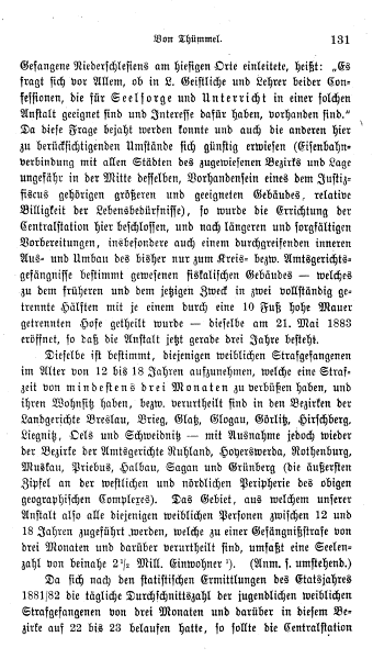 Einen aufschlussreichen Artikel in der Zeitschrift "Der Gerichtssaal" verfasste der Lübener Amtsrichter Conrad Thümmel im Jahre 1887. Er begründet die Notwendigkeit einer besonderen Einrichtung für jugendliche weibliche Strafgefangene und weist nach, dass Lüben den modernen Anforderungen des Strafvollzugs gewachsen ist.