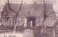 Katholische Volksschule in Kaltwasser 1934 mit Kantor Josef Holitschke.