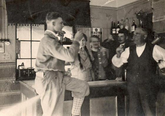 Gustav Neumann, Gastwirt in Petschkendorf um 1930. Neben ihm Sohn Konrad mit Ehefrau Martha.