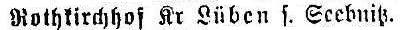 Dorf Kreis Lüben Regierungsbezirk Liegnitz 830 Einwohner Gemeindevorsteher Zebulka Eisenbahnstation und Güterladestelle Kotzenau Amtsgericht Kreissparkasse (Fernsprecher 10 Postscheckkonto Breslau 12665) Finanzamt Gewerbeamt Zollamt Lüben Landgericht Elektrizitätswerk Liegnitz (Wechselstrom) Sparkasse und Darlehnskasse (Fernsprecher 26) evangelische Kirche und Volksschule Fortbildungsschule ländlich