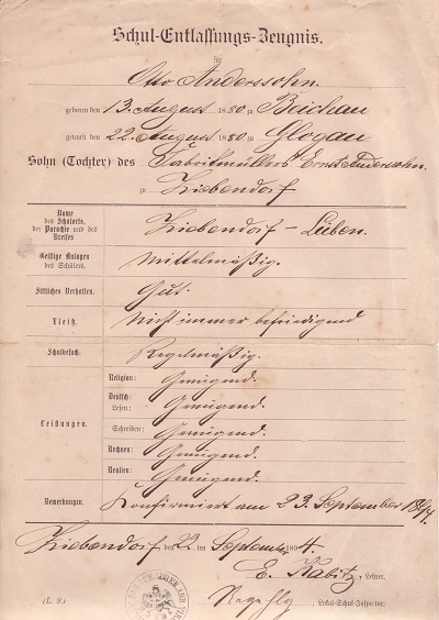 Schul-Entlassungs-Zeugnis für Otto Anderssohn